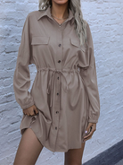 Button Up Drawstring Shirt Dress HW53ZKT466