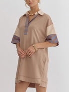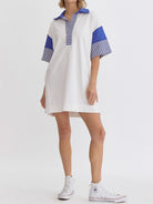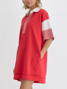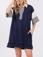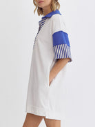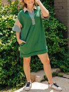 Cotton Striped Solid Color Polo Lapel Loose T-shirt Short Skirt