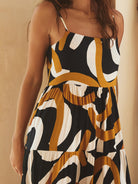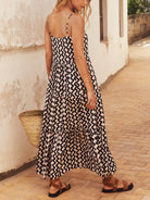 Elegant and simple printed suspender loose swing dress