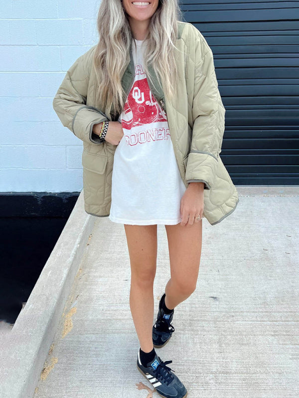 Loose Hourglass Quilted Cotton Colorblock Double Patch Pocket Jacket