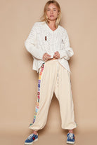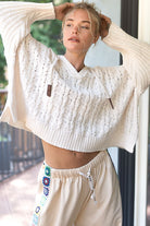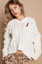 POL Rib Weave Sleeves Hooded Cable Knit Sweater