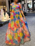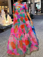 Printed Pleated Short Sleeve Round Neck Dress HWFQHAS2CY