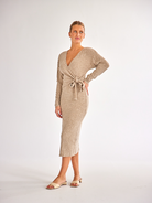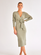 V-neck Long-sleeved Knitted Tie Dress HW58R7SVKU