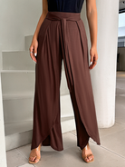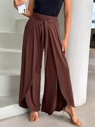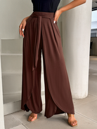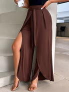Women's High Waisted Lace Up Wide Leg Split Pants Trousers HY69E4ZBKP