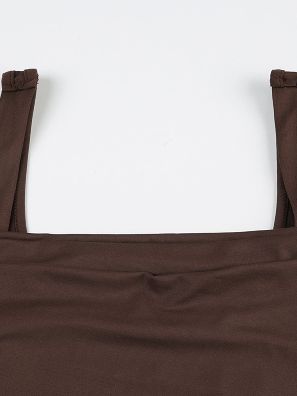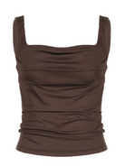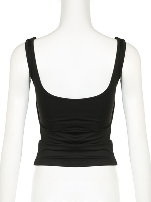 Women's Solid Color Pleated Design Square Neck Versatile Simple Camisole