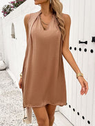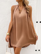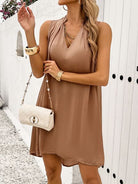 Women's Solid V-neck Chain Sleeveless Mini Dress H8847PHZDV