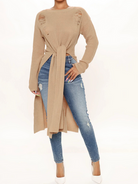 Women's Tie Front High Split Hem Hollow Out Knitted Sweater HY6RUU8UFY