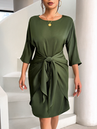 Women's Tie Front Round Neck Half Sleeve Midi Dress HY33V8NYL9