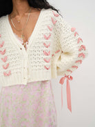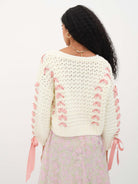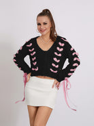 Women's V-neck lace-up hollow knitted cardigan top loose casual sweater jacket