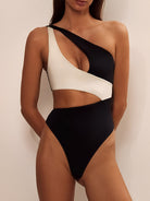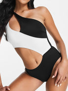 Ladies new black and white stitching contrasting color hollow swimsuit