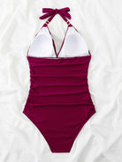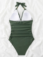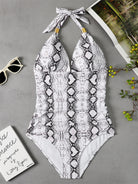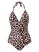 One Piece Swimsuit Conservative Leopard Print Halter Red Backless Swimsuit