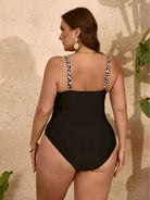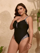 plus size pure black leopard print one-piece slim bikini swimsuit