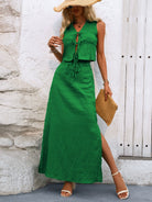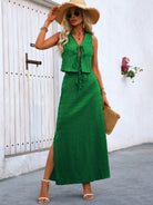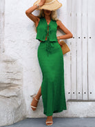 Honey Tied Sleeveless Top and Slit Skirt Set