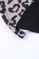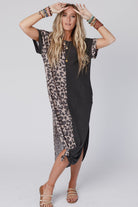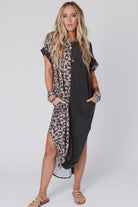 Black Contrast Solid Leopard Short Sleeve T-shirt Dress with Slits