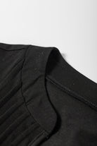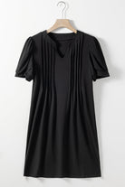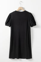 Black Notched Neck Pleated Puff Sleeve Shift T-shirt Dress