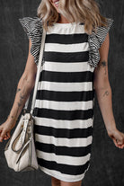 Black Stripe Contrast Ruffled Sleeve T-shirt Dress