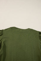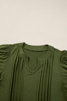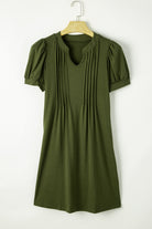 Fern Green Notched Neck Pleated Puff Sleeve Shift T-shirt Dress