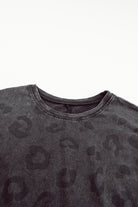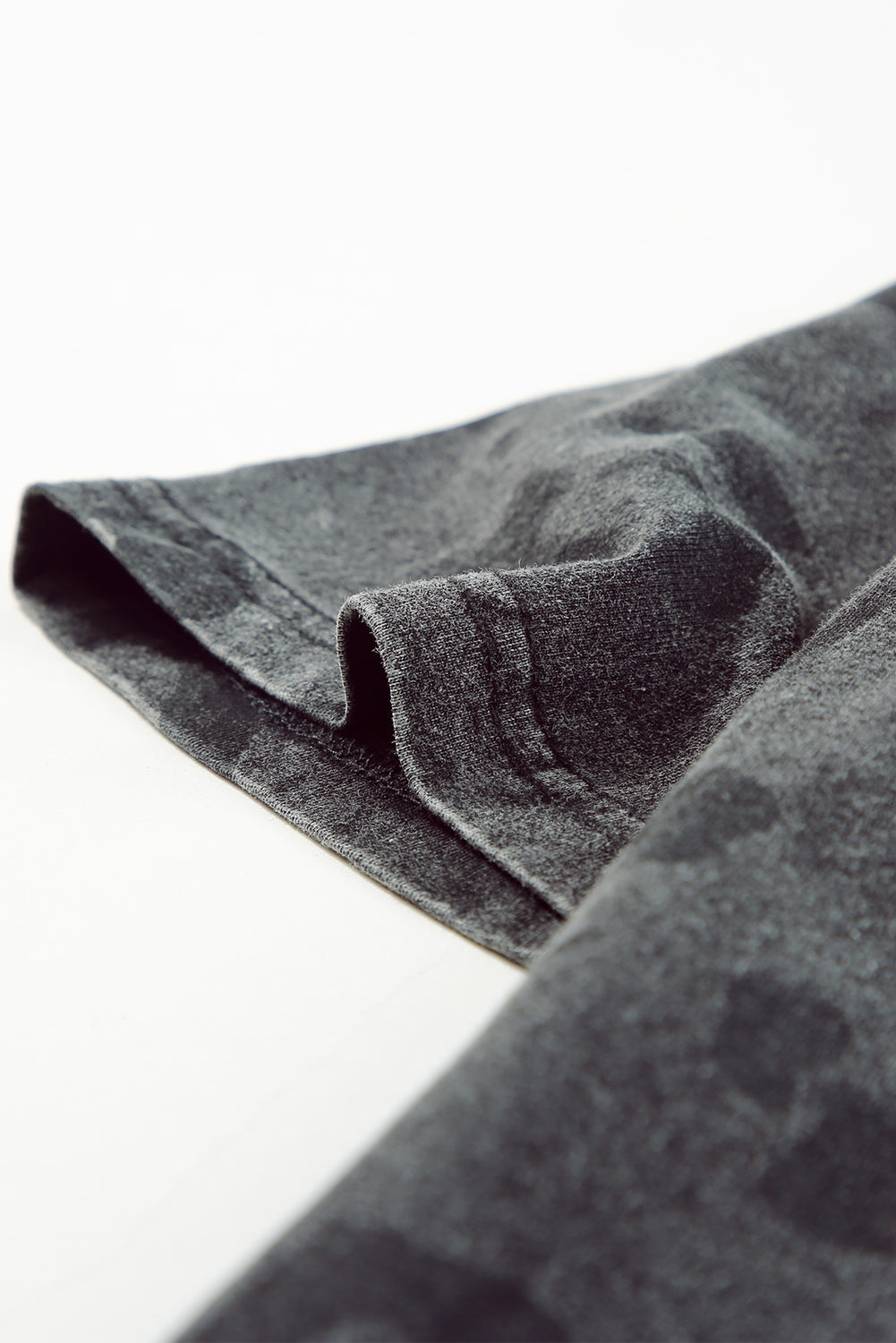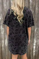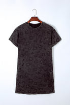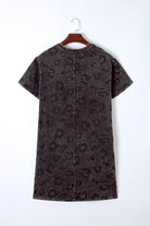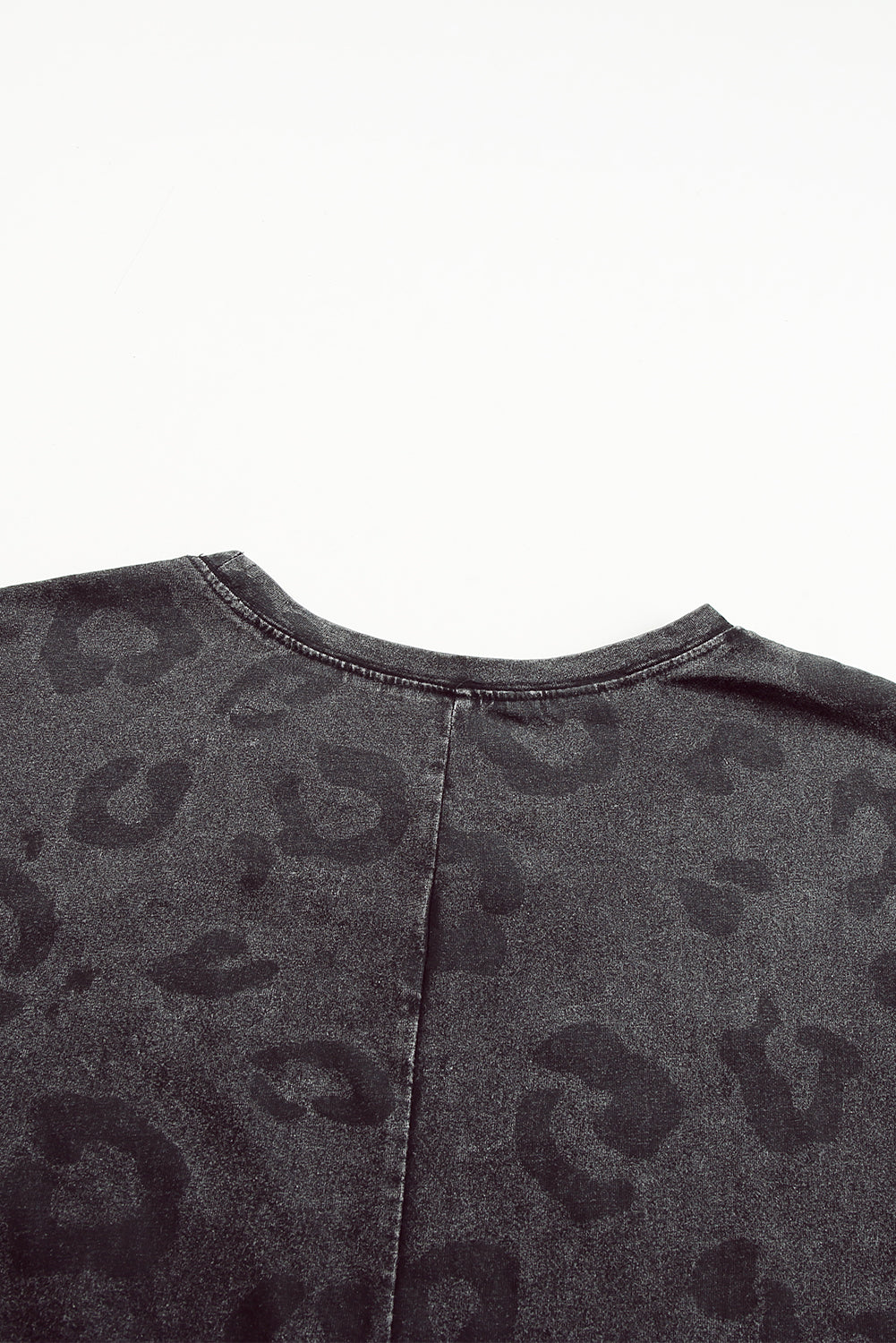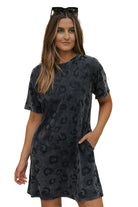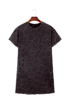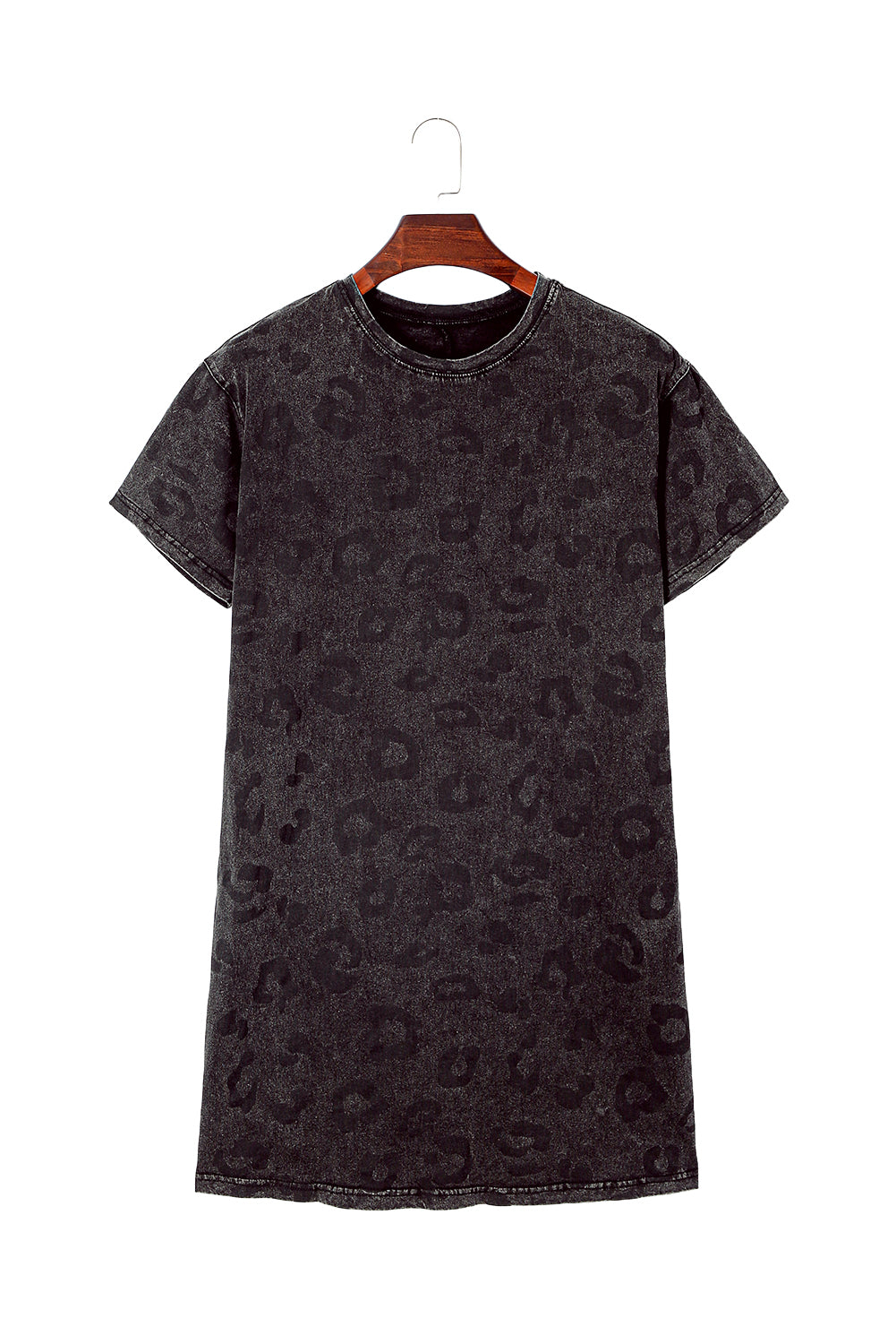 Gray Vintage Washed Leopard T-Shirt Dress with Pockets