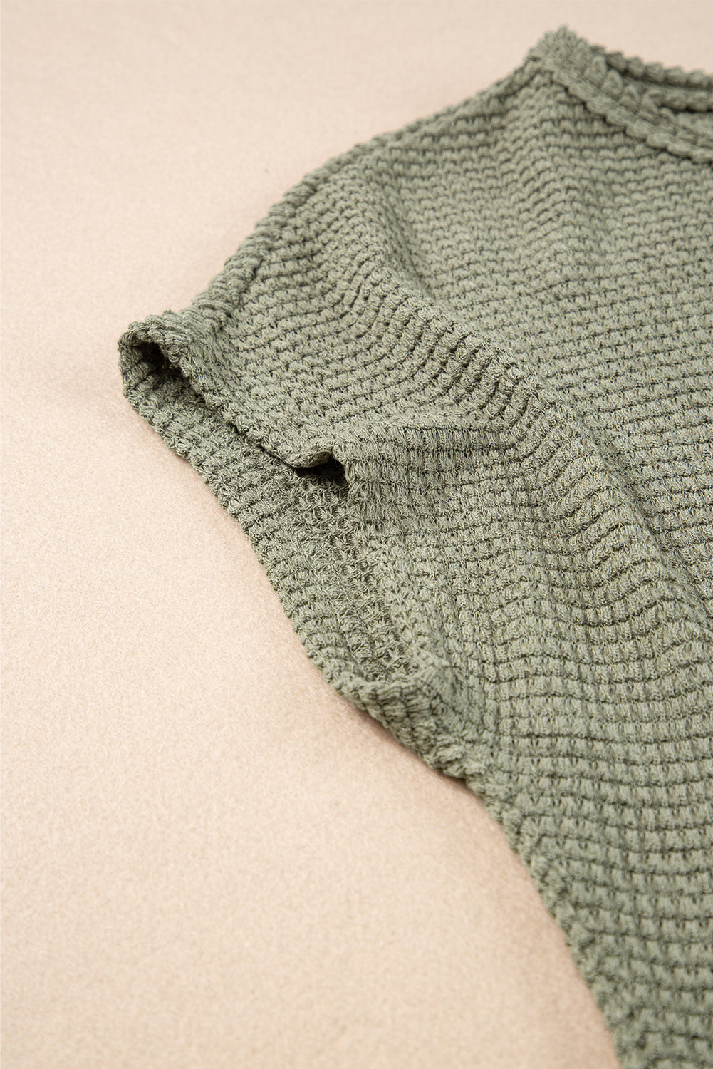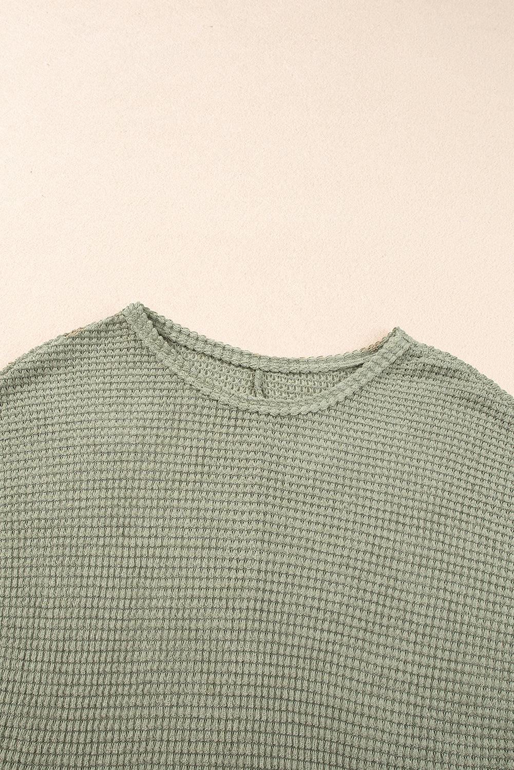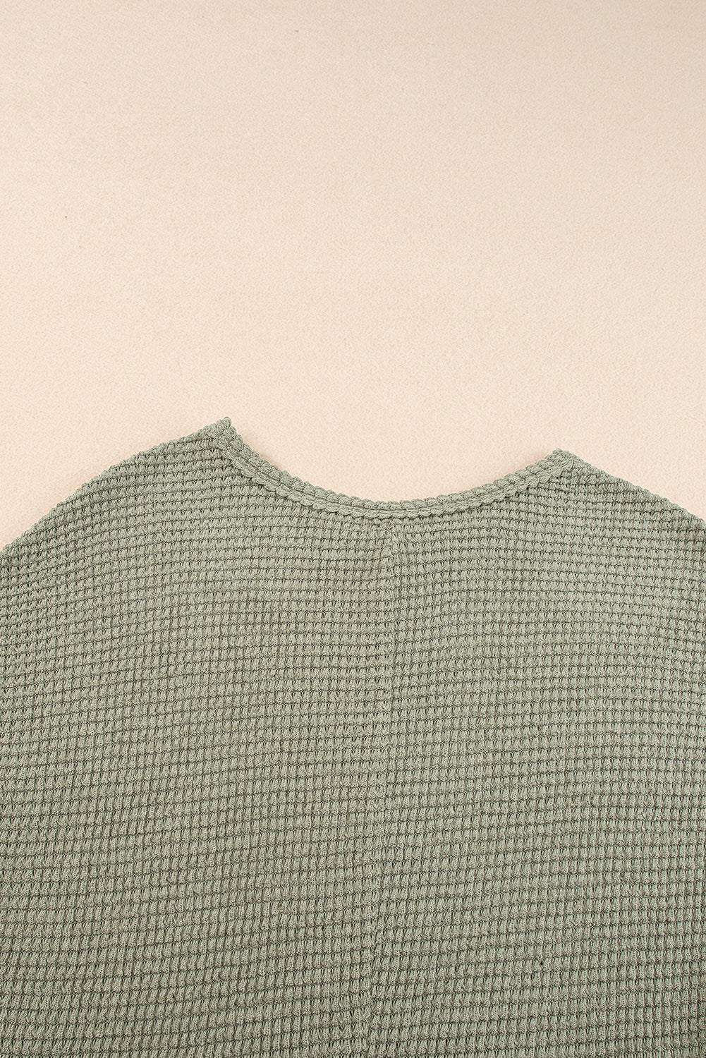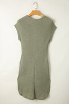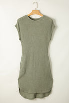 Jungle Green Waffle Texture Curved Hem Side Slit T-shirt Dress