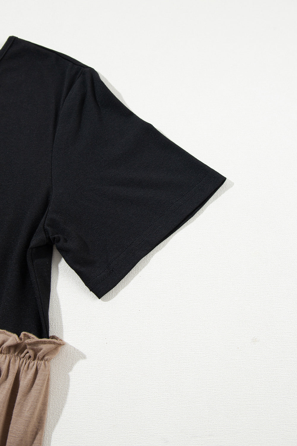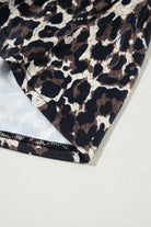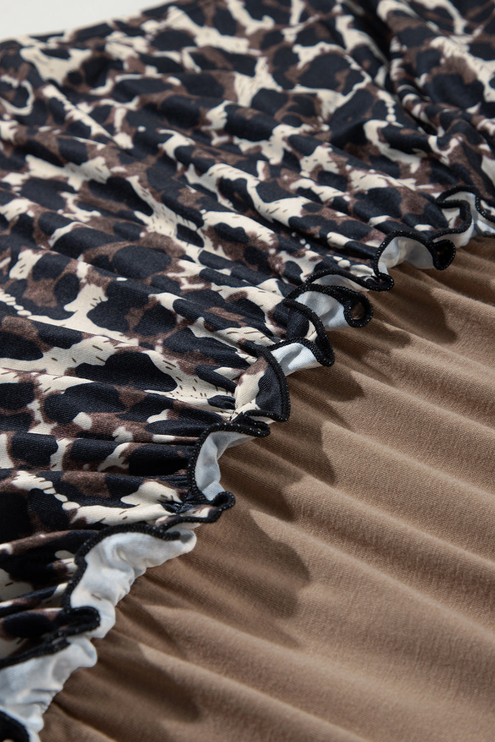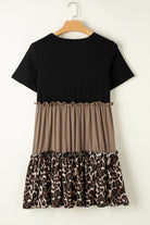 Light French Beige Leopard Print Colorblock Frill Trim T-shirt Dress