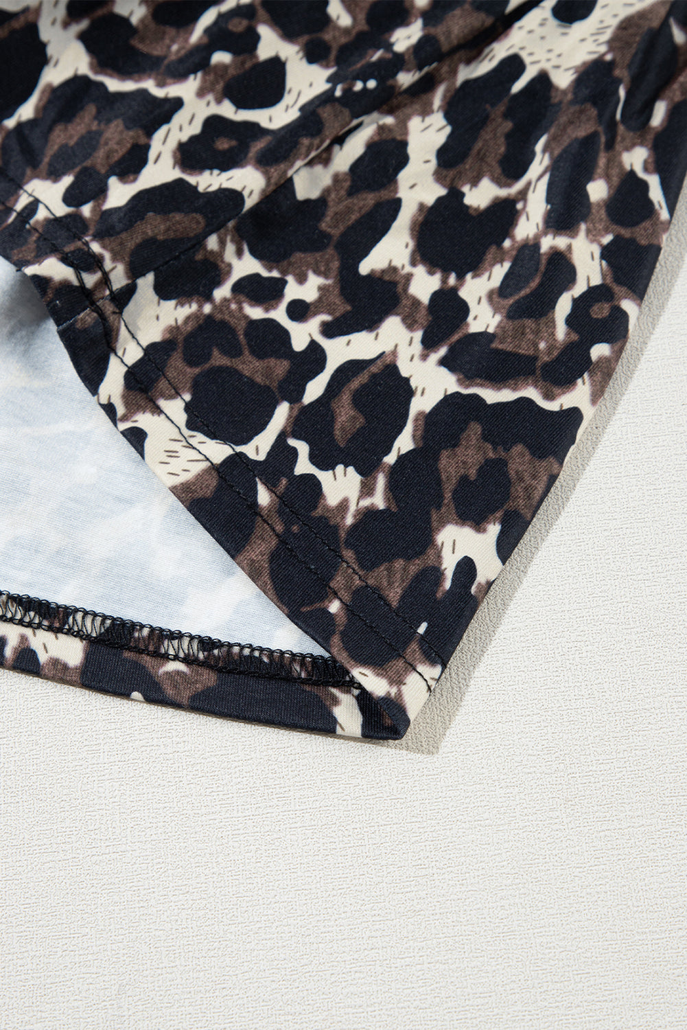 This short dress features a leopard print pattern and contrasting colorblock silhouette