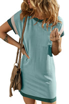 Moonlight Jade Textured Colorblock Edge Patched Pocket T Shirt Dress