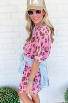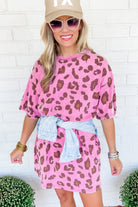 Pink Leopard Mineral Wash Side Pocket Shift Mini Dress