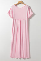 Pink V Neck Hidden Pocket Splits Maxi T-shirt Dress
