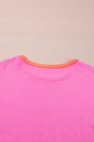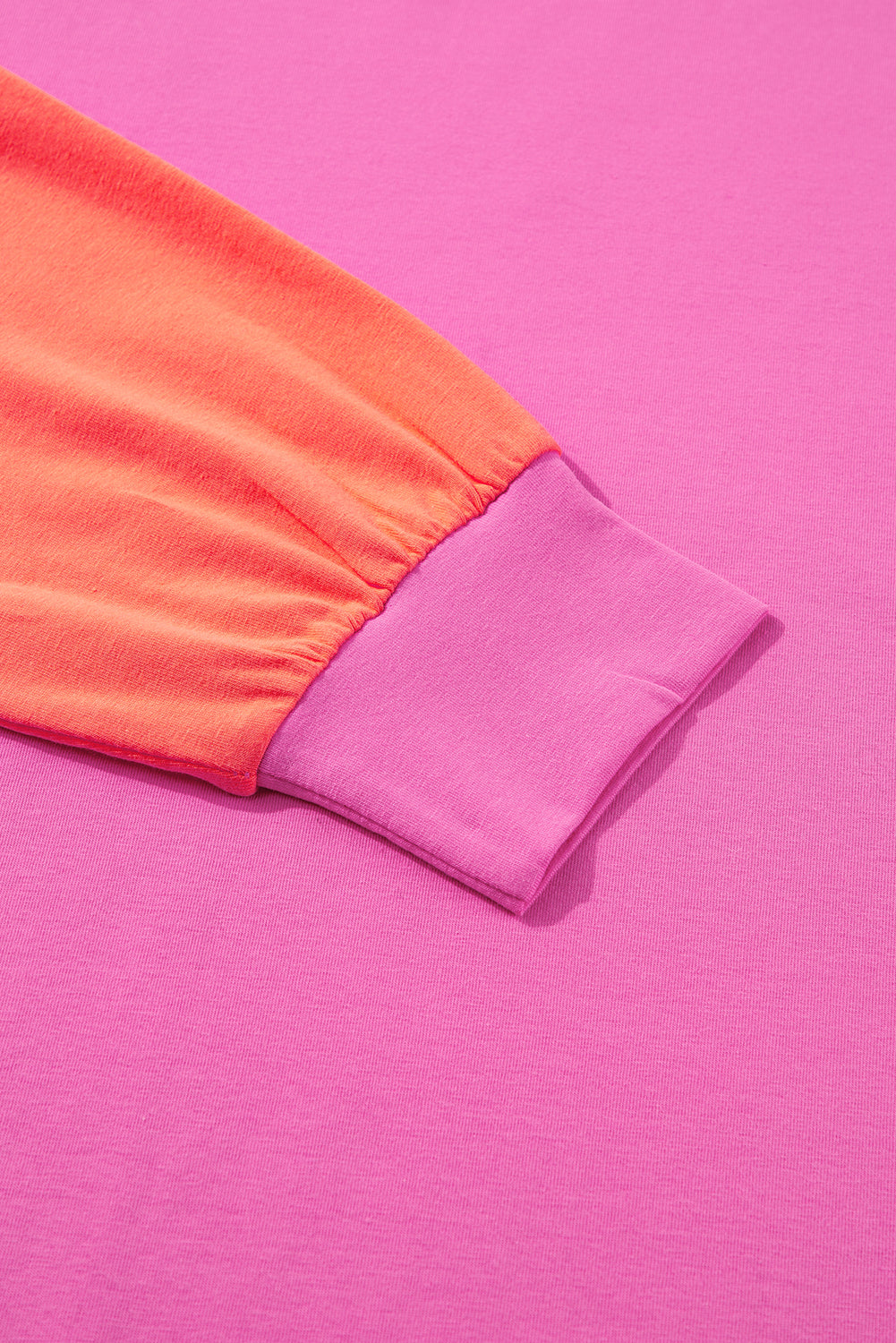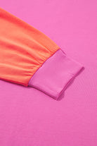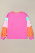 Rose Red Colorblock Patchwork Long Sleeve Loose Top