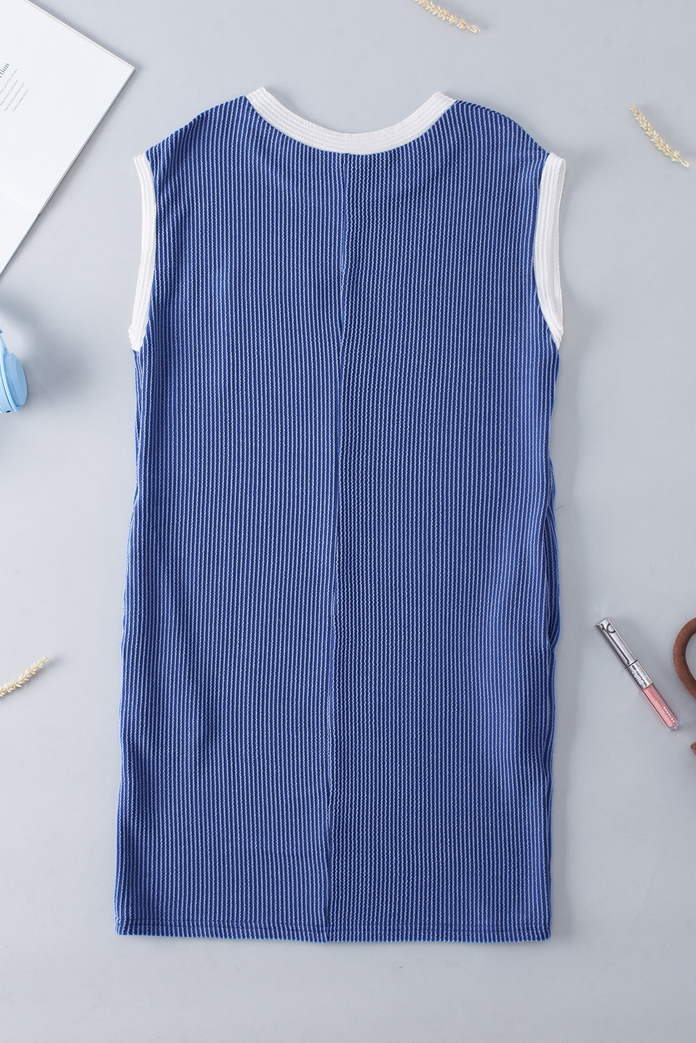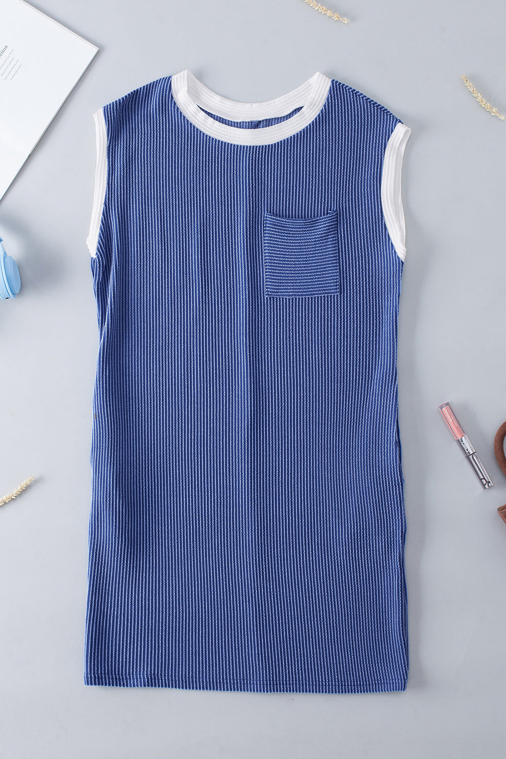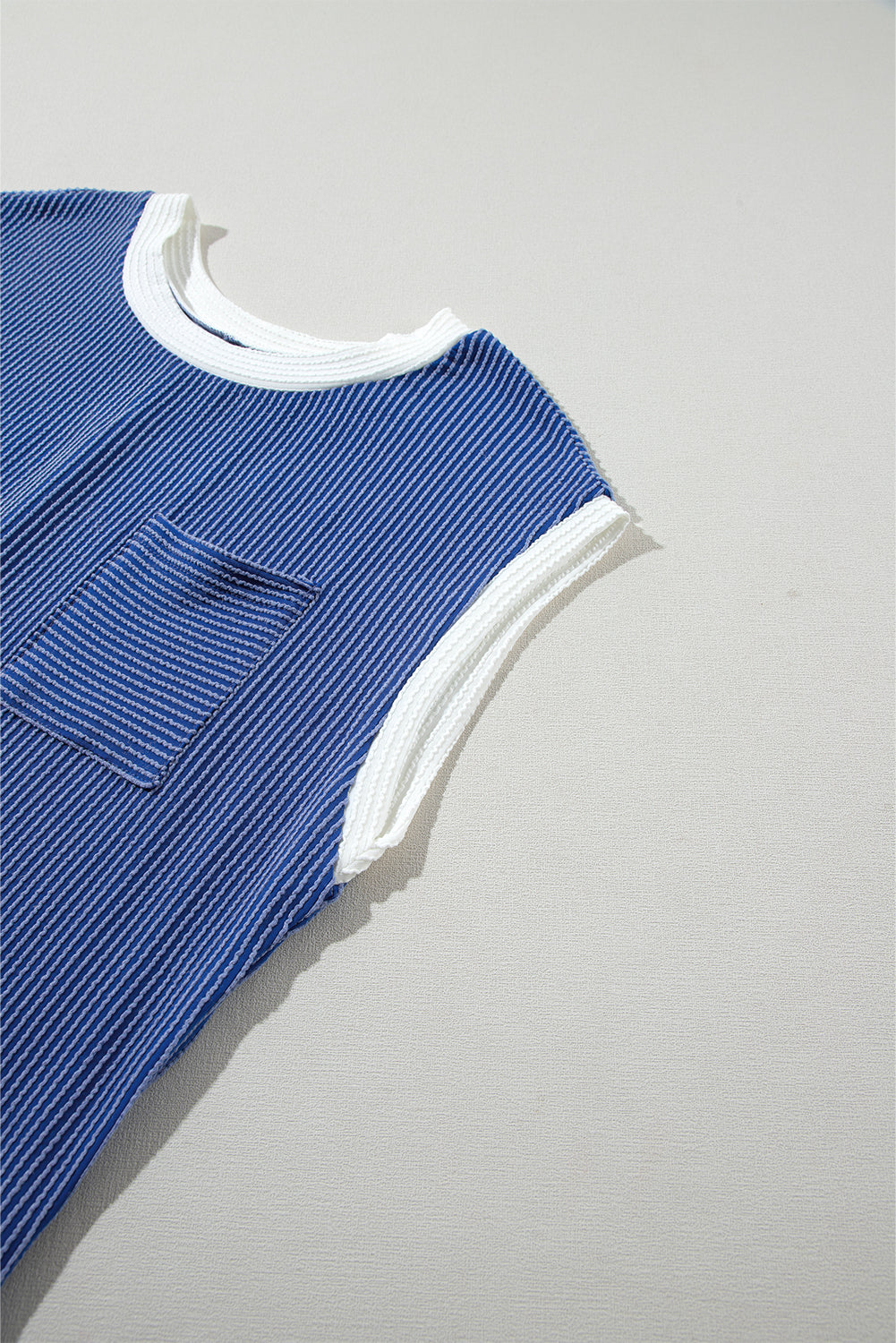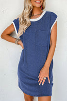 Sail Blue Rib Textured Cap Sleeve T-Shirt Dress