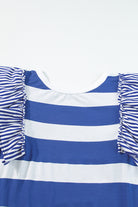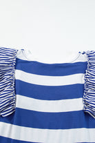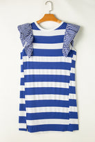 Sky Blue Stripe Contrast Ruffled Sleeve T-shirt Dress