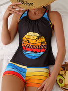 New Fashion Beach Spa Vacation Boxer Vest Sports Contrast Color Swimsuit Suit