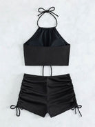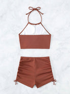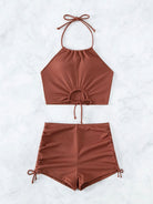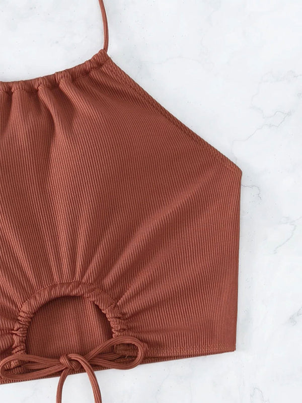 New solid color halter neck bikini split boxer briefs bikini swimsuit