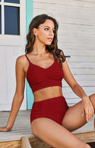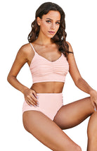 Sexy Stretch Gathered Without Underwire Adjustment Shoulder Strap Top & High Waist Bikini Set