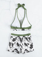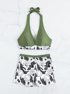 Women's High Waist Boxer Tie Printed Solid Color Panel Bikini
