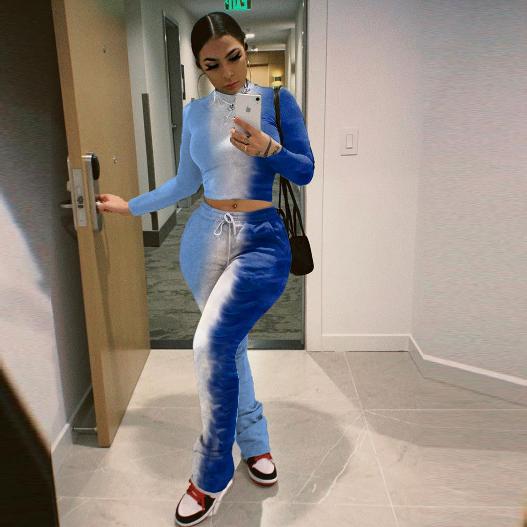 Tie-dye Printed Crinkled Trousers Athleisure Set