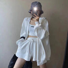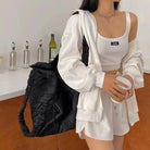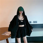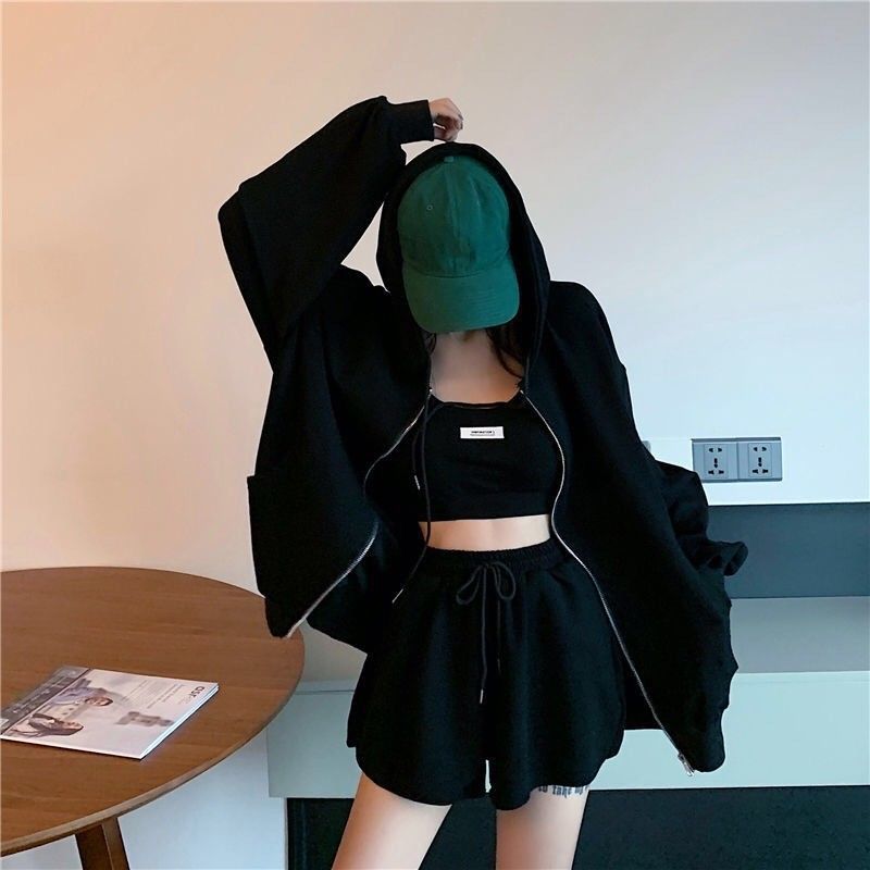 Women's Long Sleeve Athleisure Hooded Jacket Tank Top Shorts Three Piece