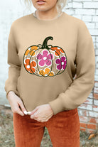 Khaki Halloween Floral Pumpkin Graphic Drop Shoulder Sweatshirt