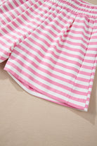 Pink Stripe Kangaroo Pocket Hoodie and Wide Leg Shorts Set