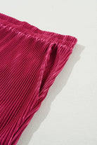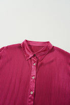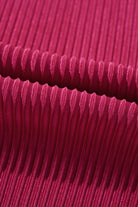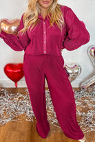 Rose Red Plus Size Ribbed Long Sleeve Shirt and Pants Pajama Set