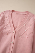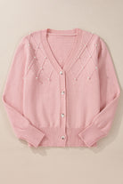Sepia Rose Textured Knit Pearl Beaded Button Up Cardigan