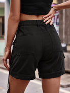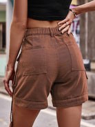New American Denim Overalls Casual Pocket Shorts Elastic Waist
