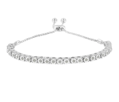 .925 Sterling Silver 1/4 Cttw Miracle-Set Diamond 4”-10” Adjustable Bolo Tennis Bracelet (I-J Color, I3 Clarity)