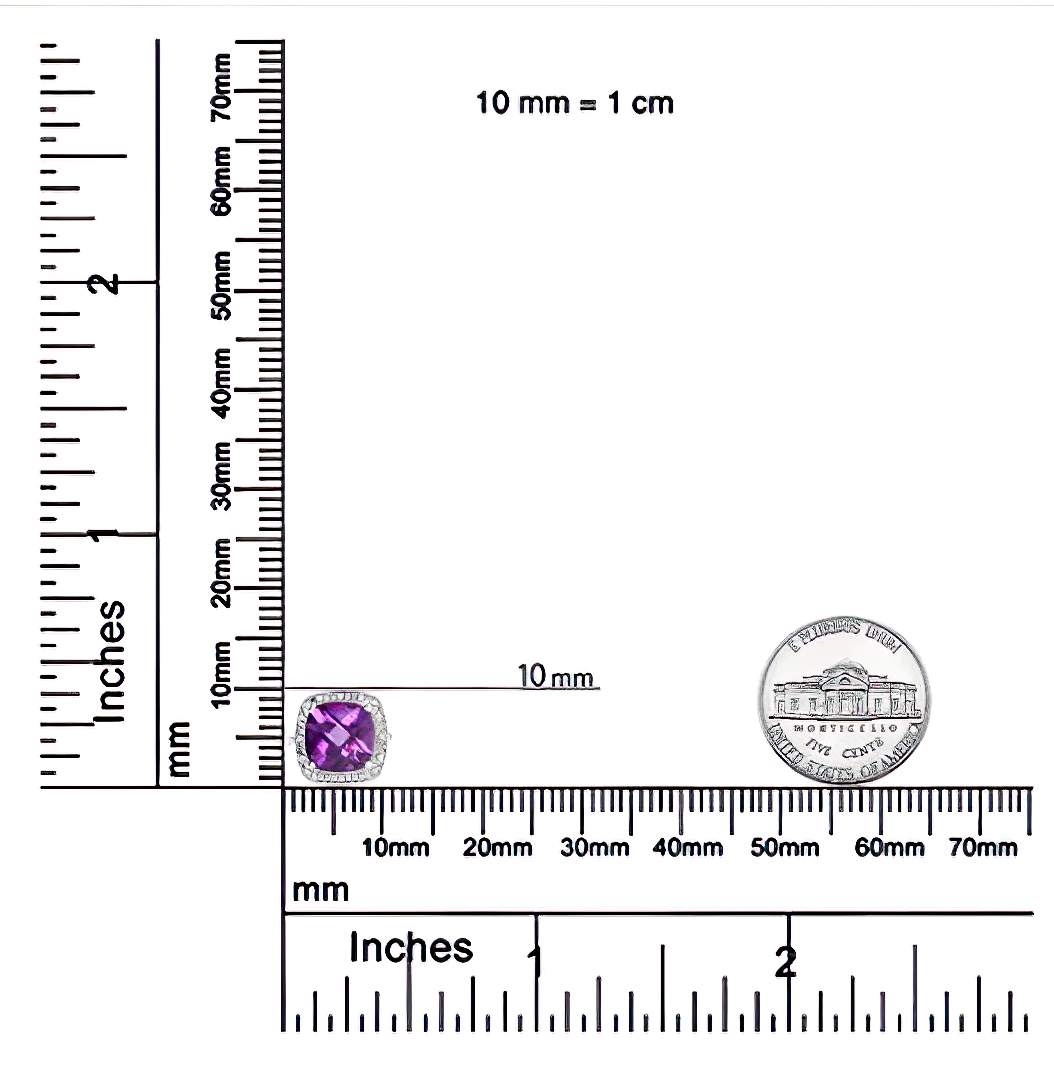 .925 Sterling Silver 10mm Cushion Cut Amethyst Gemstone and Diamond Accent Lariat 4”-10” Adjustable Bolo Bracelet (H-I Color, SI1-SI2 Clarity)