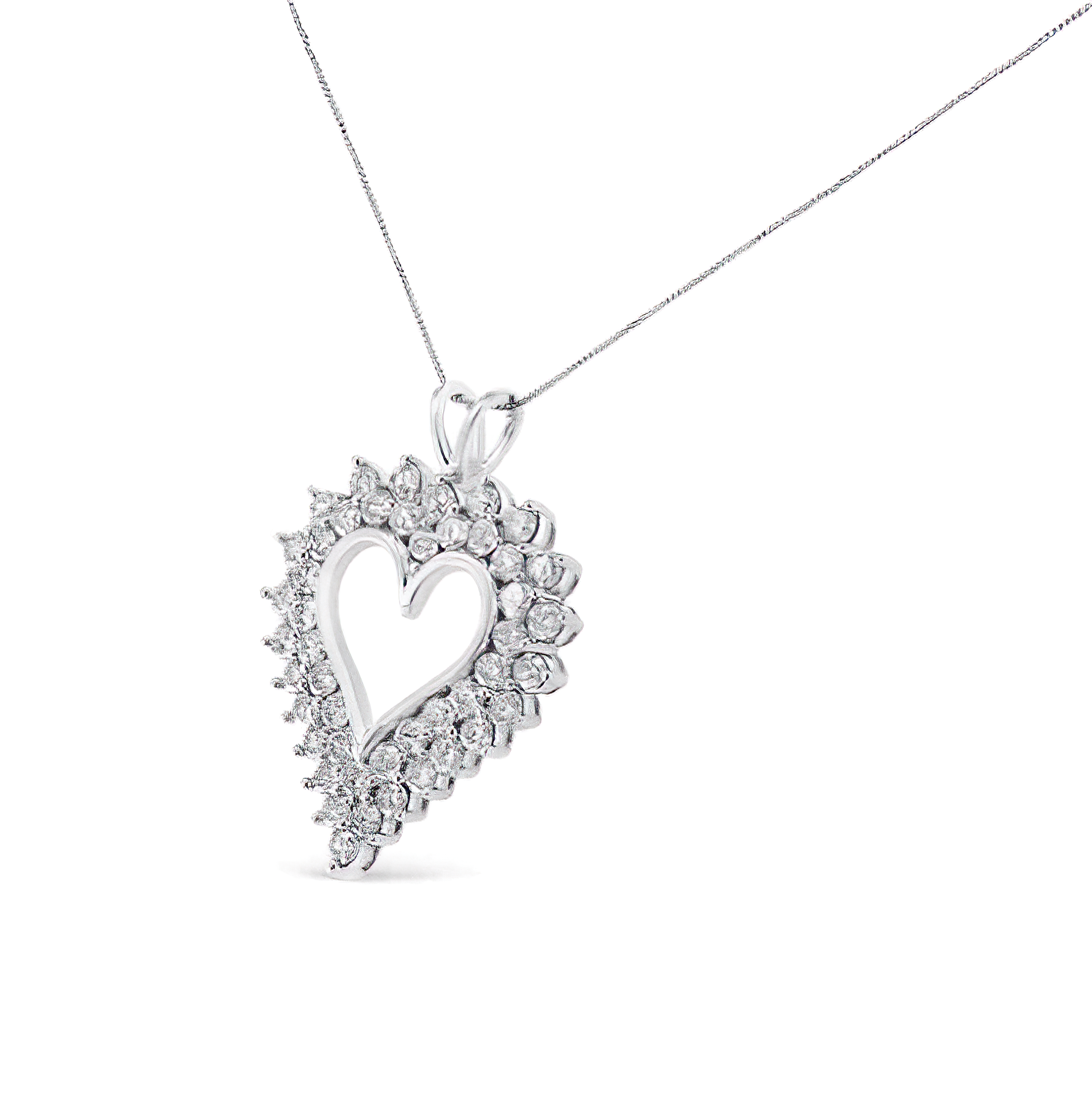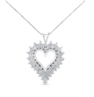 .925 Sterling Silver 4 Cttw Round-Cut Double Row Composite Diamond Heart 18" Pendant Necklace (K-L Color, I1-I2 Clarity)