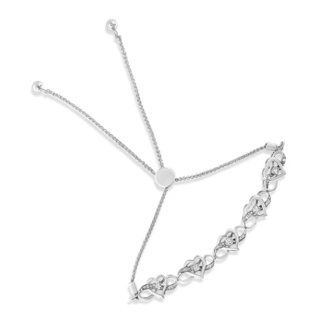 .925 Sterling Silver Diamond Accent Interlocking Infinity and Heart 4”-10” Adjustable Bolo Tennis Bolo Bracelet (H-I Color, I2-I3 Clarity)