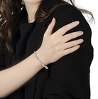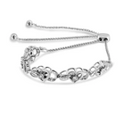Make her heart skip a beat with this breathtaking bolo bracelet, a testament to your love and admiration. Meticulously crafted from sterling silver, it is adorned with a mesmerizing array of interlocking hearts and infinity symbols, each accentuated by glistening round-cut diamonds that radiate brilliance and beauty.