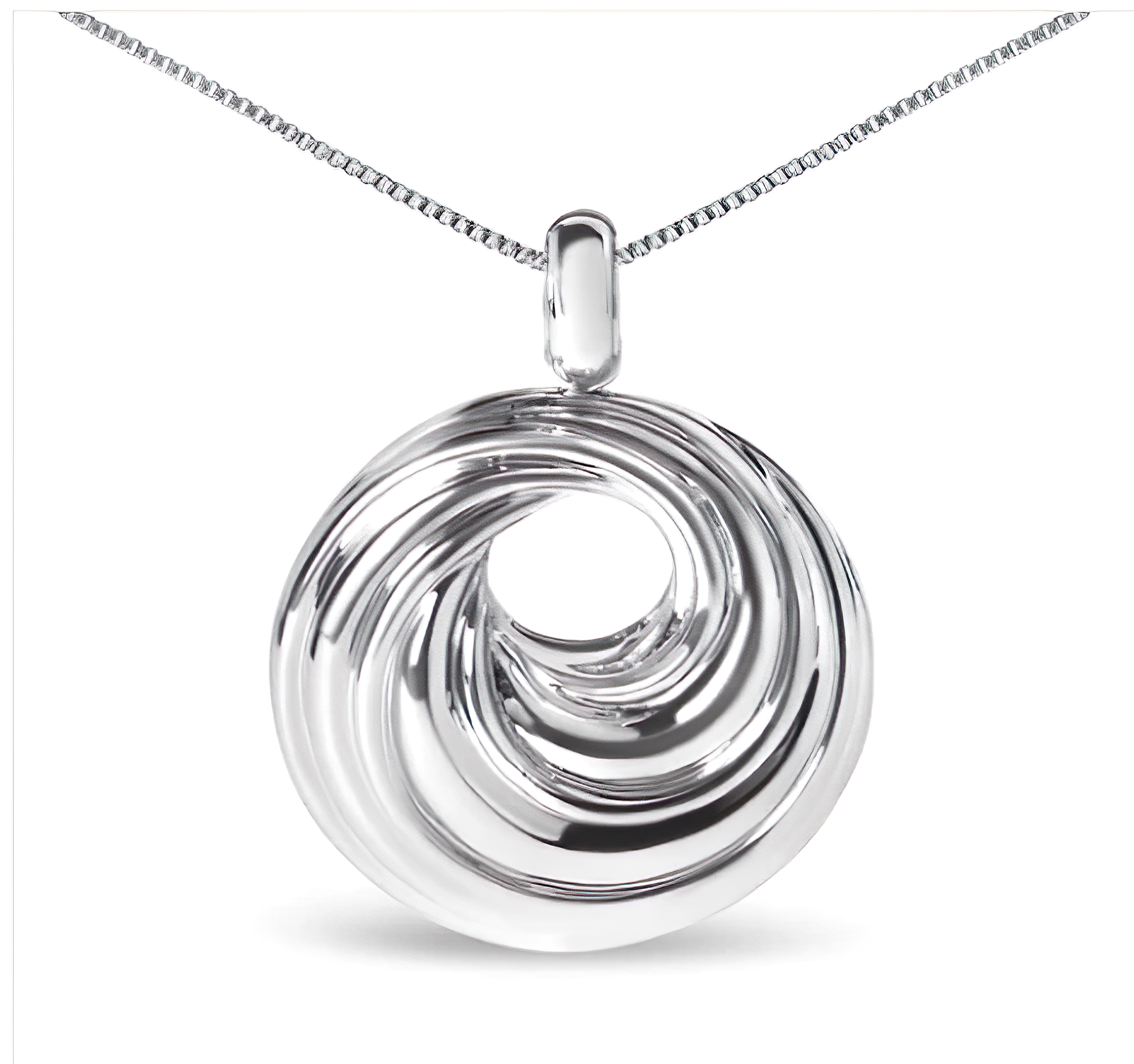 .925 Sterling Silver Endless Wave Swirl Statement Medallion 18" Pendant Necklace