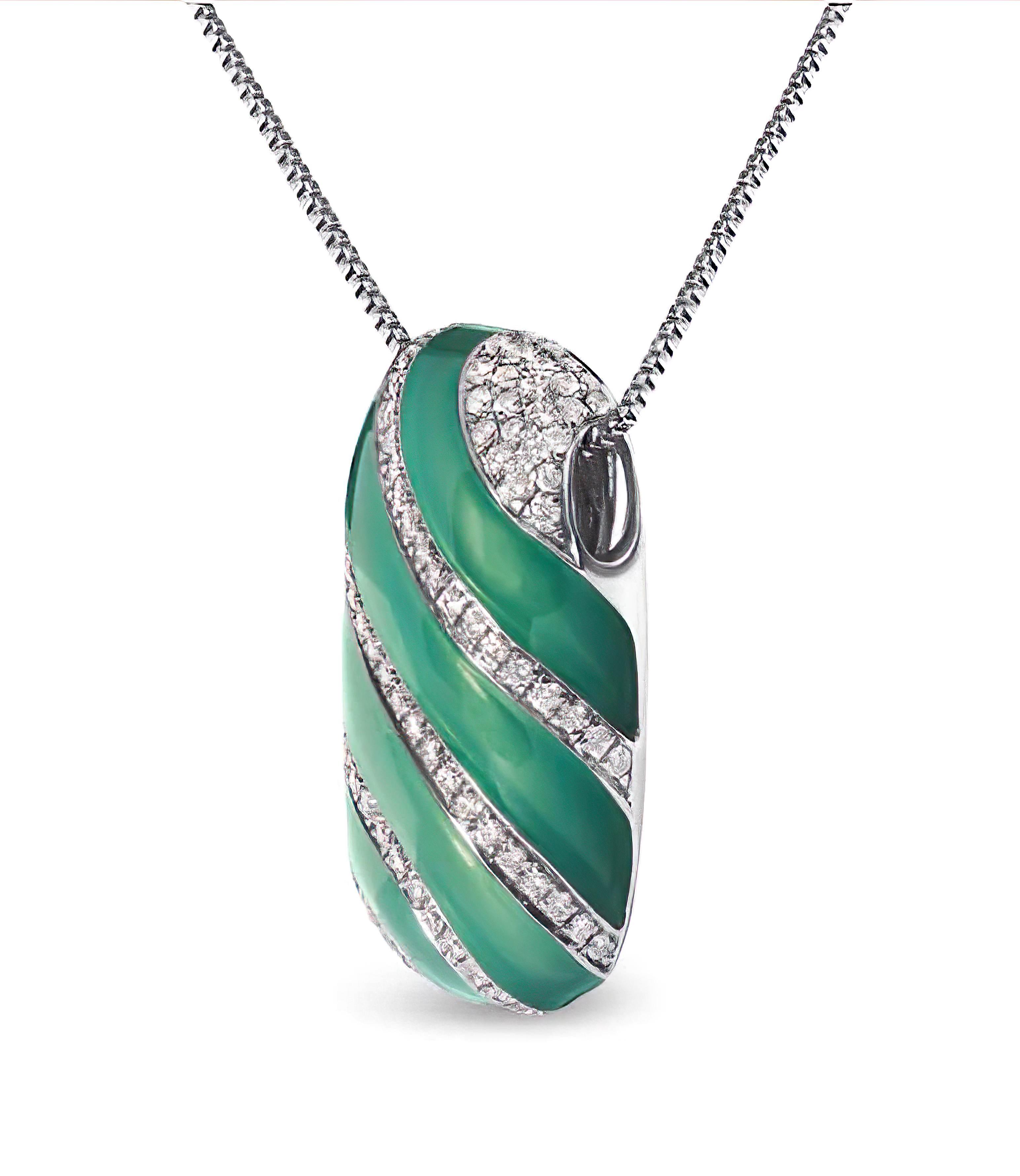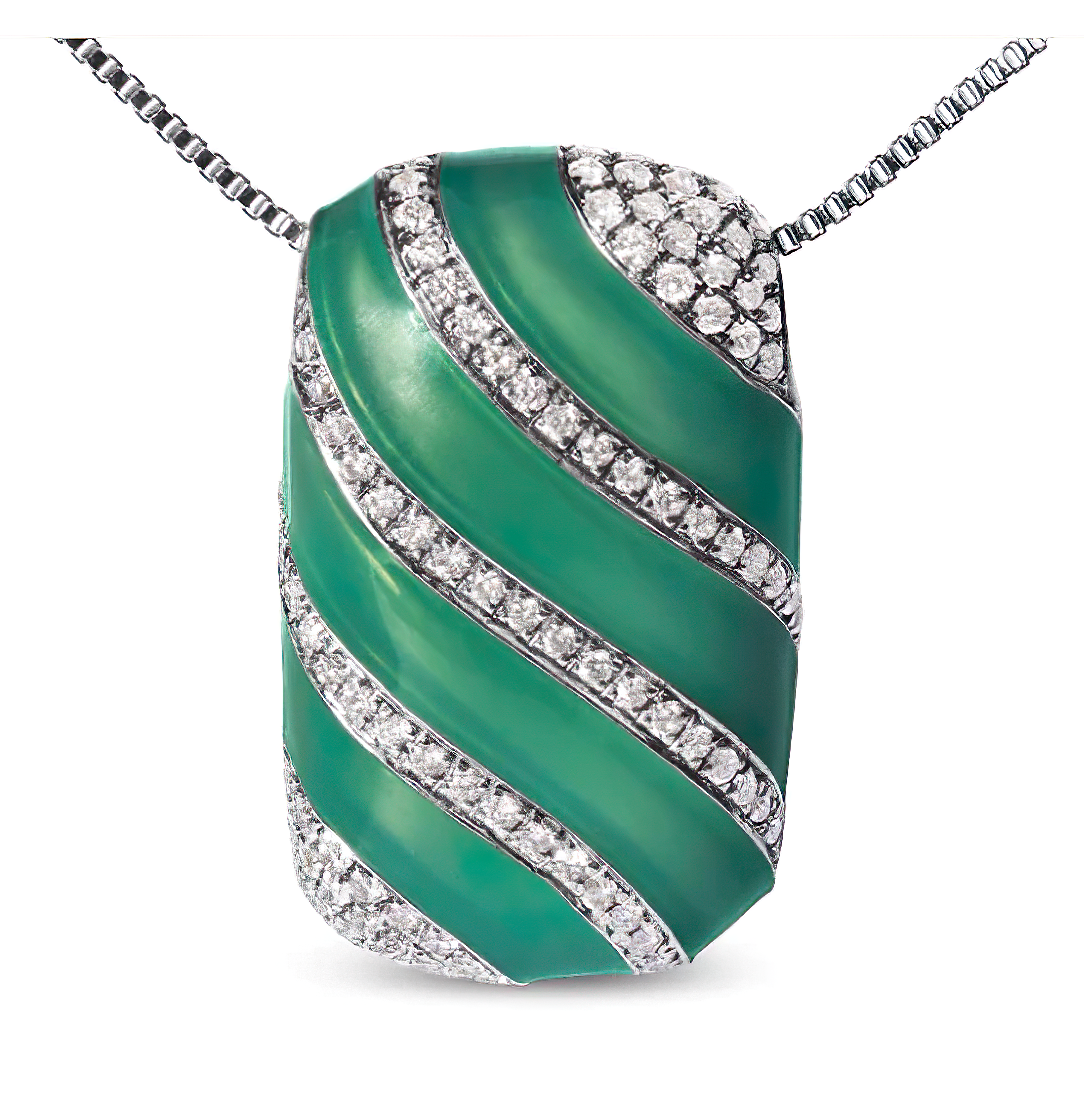 Indulge in the timeless beauty of this exquisite pendant necklace, perfect for any occasion. Crafted from .925 sterling silver, it features a captivating turquoise enamel design that immediately catches the eye. What truly sets this necklace apart are the 113 natural round diamonds adorning it, totaling 0.5 cttw with exceptional F-G color and VS1-VS2 clarity. Expertly prong-set, these diamonds ensure maximum sparkle and brilliance. The necklace comes with an 18" chain and a secure spring ring clasp, making it ideal for women who seek to add elegance and sophistication to their wardrobe. Treat yourself or a loved one to this stunning diamond enamel pendant today and experience the perfect blend of luxury and style.