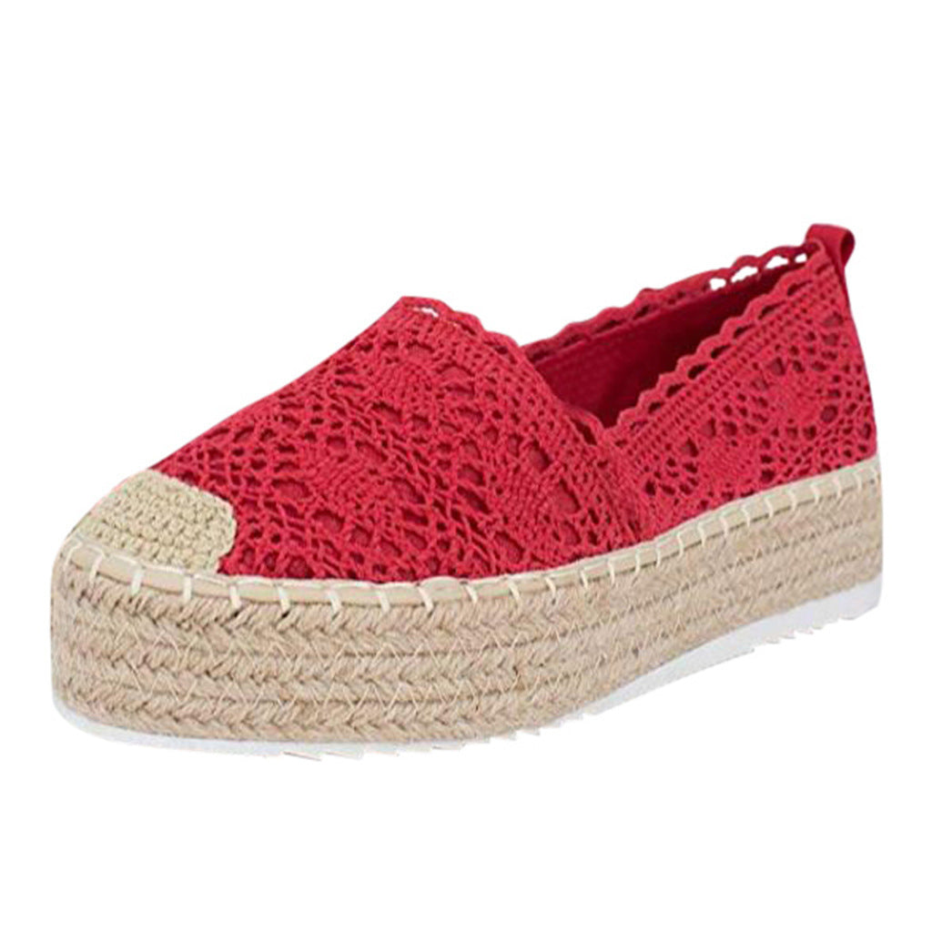 Women Flats Shoes Espadrilles Flatform Lace Canvas Hollow Floral